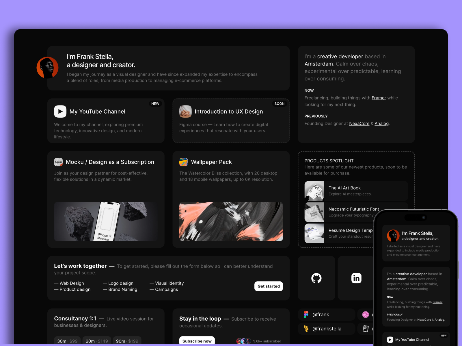 Explore our world of exceptional Framer templates, enchanting digital components, and innovative code solutions. Quality and creativity at your fingertips. Follow us on Twitter/X for the latest product updates and exclusive offers.